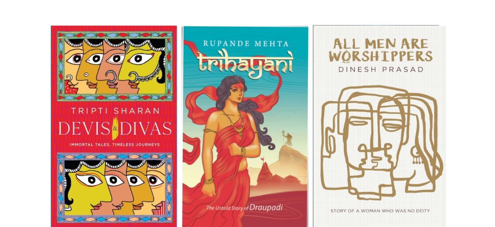 Devis and Divas: Immortal Tales, Timeless Journeys by Tripti Sharan; Trihayani: The Untold Story of Draupadi by Rupande Mehta; All Men are Worshippers by Dinesh Prasad