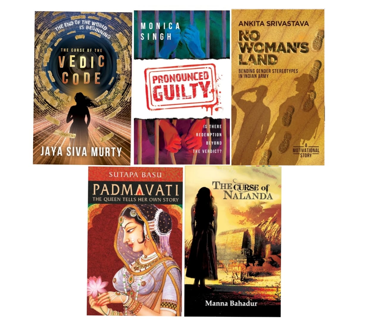 The Curse of the Vedic Code by Jaya Siva Murty; Pronounced Guilty by Monica Singh; No Woman's Land by Ankita Srivastava; Padmavati: The Queen tells her own story by Sutapa Basu; The Curse of Nalanda by Manna Bahadur