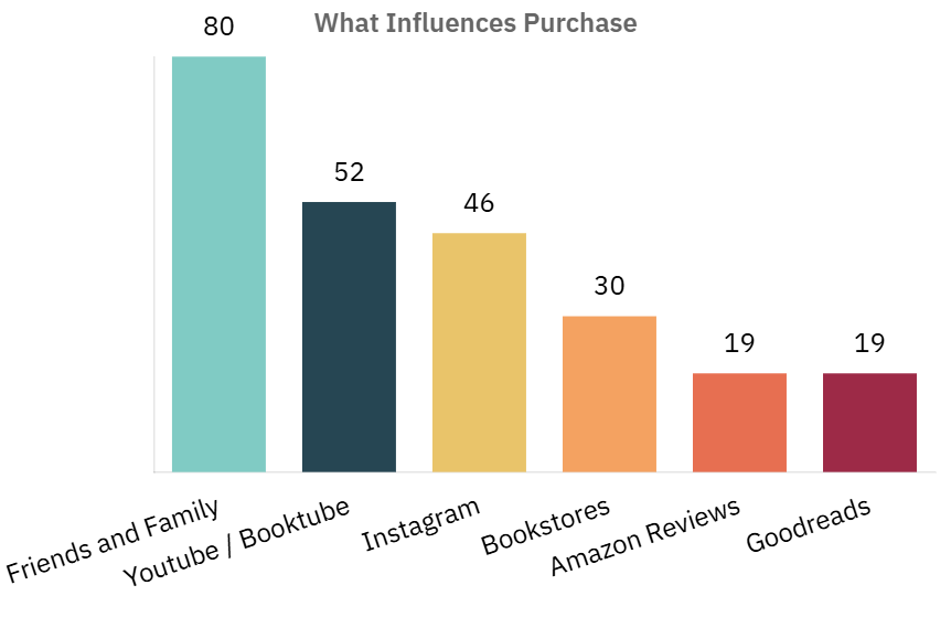 While traditional recommendations from friends and family remain influential, digital communities now shape the majority of youth reading choices. Platforms like Instagram (Bookstagram), YouTube (BookTube), have transformed book discovery into a visually engaging and trend-driven experience.